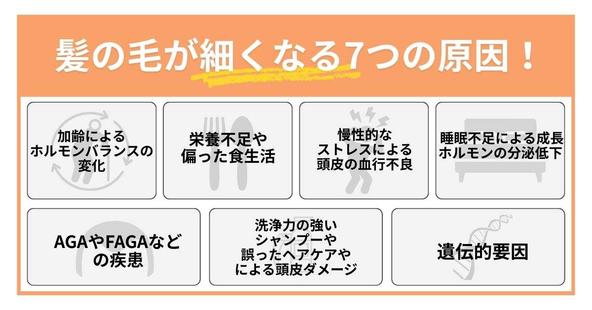 ここでは髪の毛が細くなる7つの主要な原因について詳しく解説していきます。