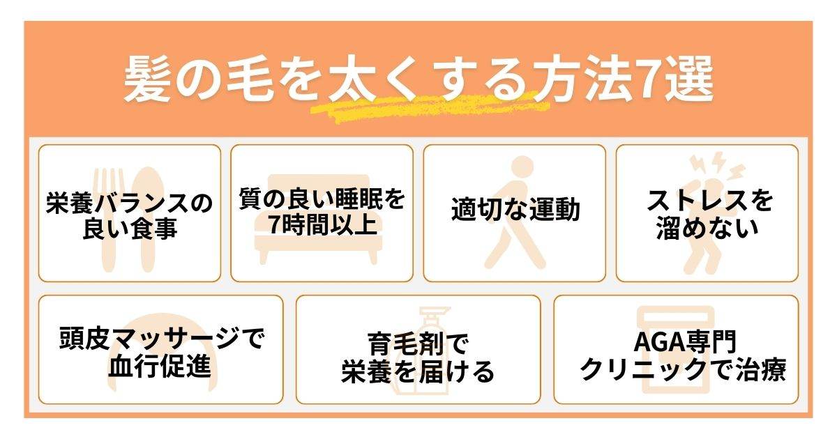 ここでは髪の毛を太くするために実践すべき7つの方法を詳しく紹介していきます。