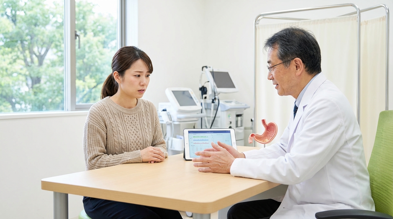 特に、40歳以上で持続する吐き気がある方、体重減少を伴う吐き気がある方には、胃カメラ検査による精査をお勧めしています。当クリニックでは、鎮静剤を使用した苦痛の少ない胃カメラ検査を提供しており、多くの患者さんが「思ったより楽だった」と感想を述べられています。
