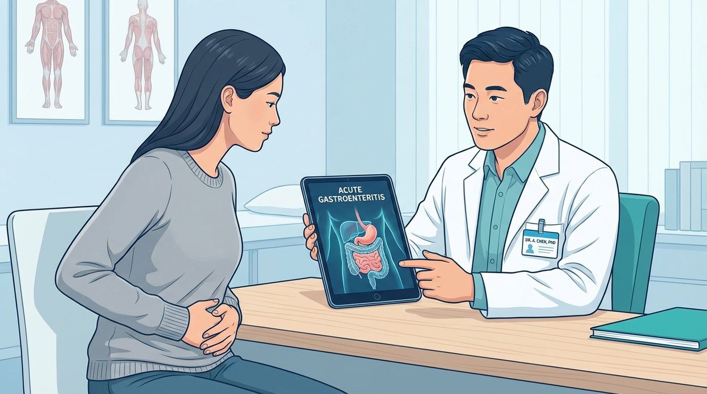 急性胃腸炎は、医学的には「急性胃炎」と「急性腸炎」の総称で、胃や腸の粘膜に急性の炎症が生じた状態を指します。